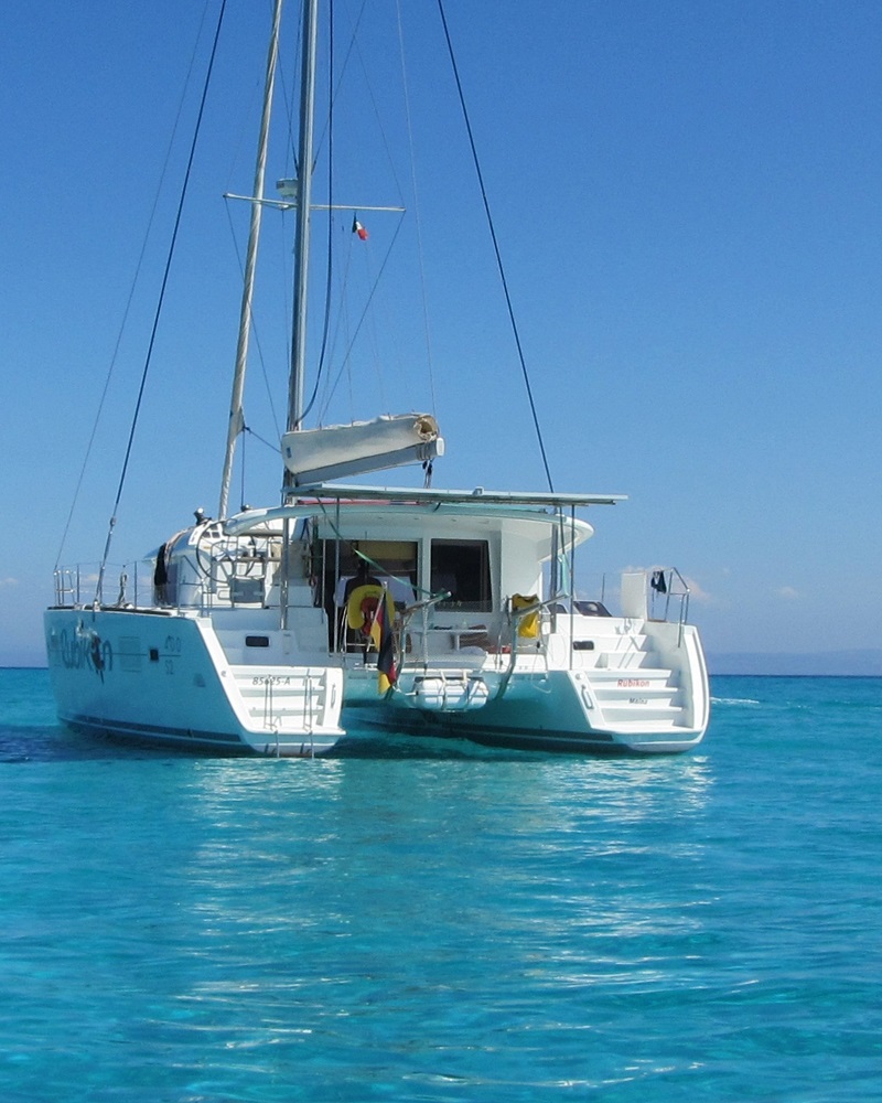 The Rubicon, a Lagoon 400 S2, is the heart of our small club. A superbly equipped catamaran,
